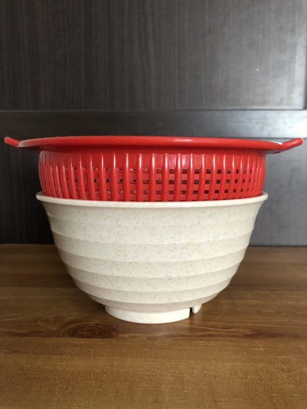 また、少量のものを水洗いして小さなザルで水切りする際にもスッポリと収まって良い具合です