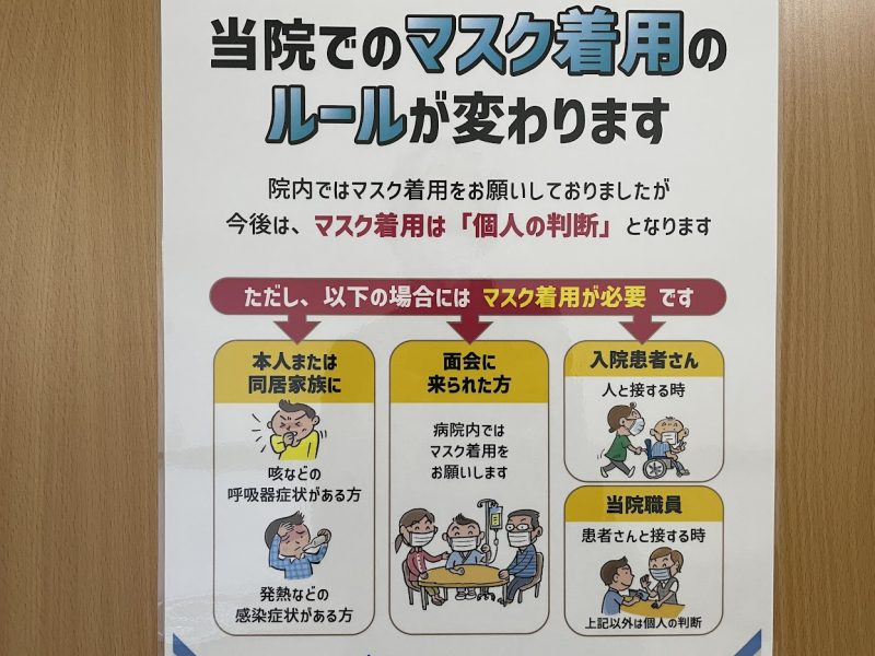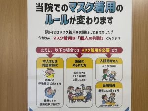 以前まで、不織布製マスク着用を必須としていた病院ですが、ついにそれが個人の判断となりました。