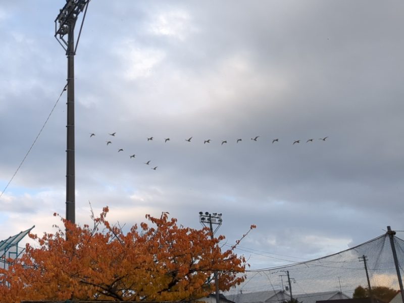 今日は小学校近くで、最初に5羽、そのあとからV字で続いていました