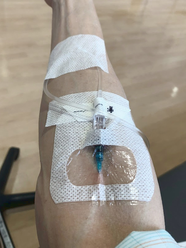 - 10:00 右腕動脈のルート確保、採血、点滴開始