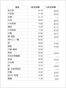 過去に国立がん研究センターが公表した10年生存率と合わせたものが以下のPDFです。