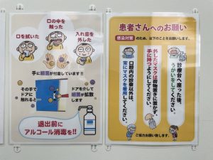 このイラストは誰かが描いたものなのか、ネットのフリー素材なのか、気になって看護師さんに訊いてみたところ、注意書きを作成している職員さんの手によるものなのだそうです。