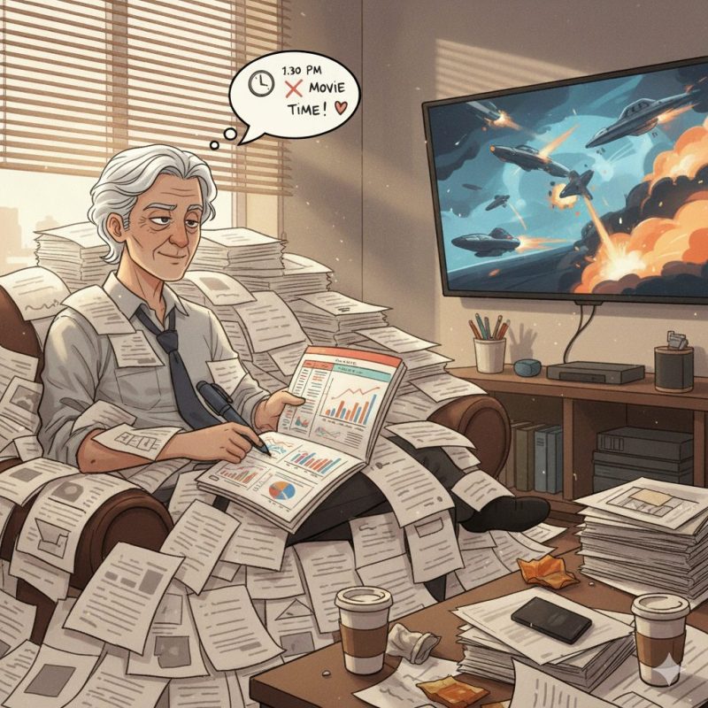 ちなみに、以下は『忙しい合間の昼間にシネマ』をAI(Gemini)さんに描いてもらったイラストです。