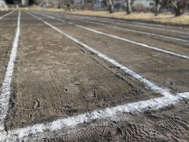 朝のグラウンドは寒くて静かですけど、子どもたちが元気に走っている姿を想像して心が暖まりました。